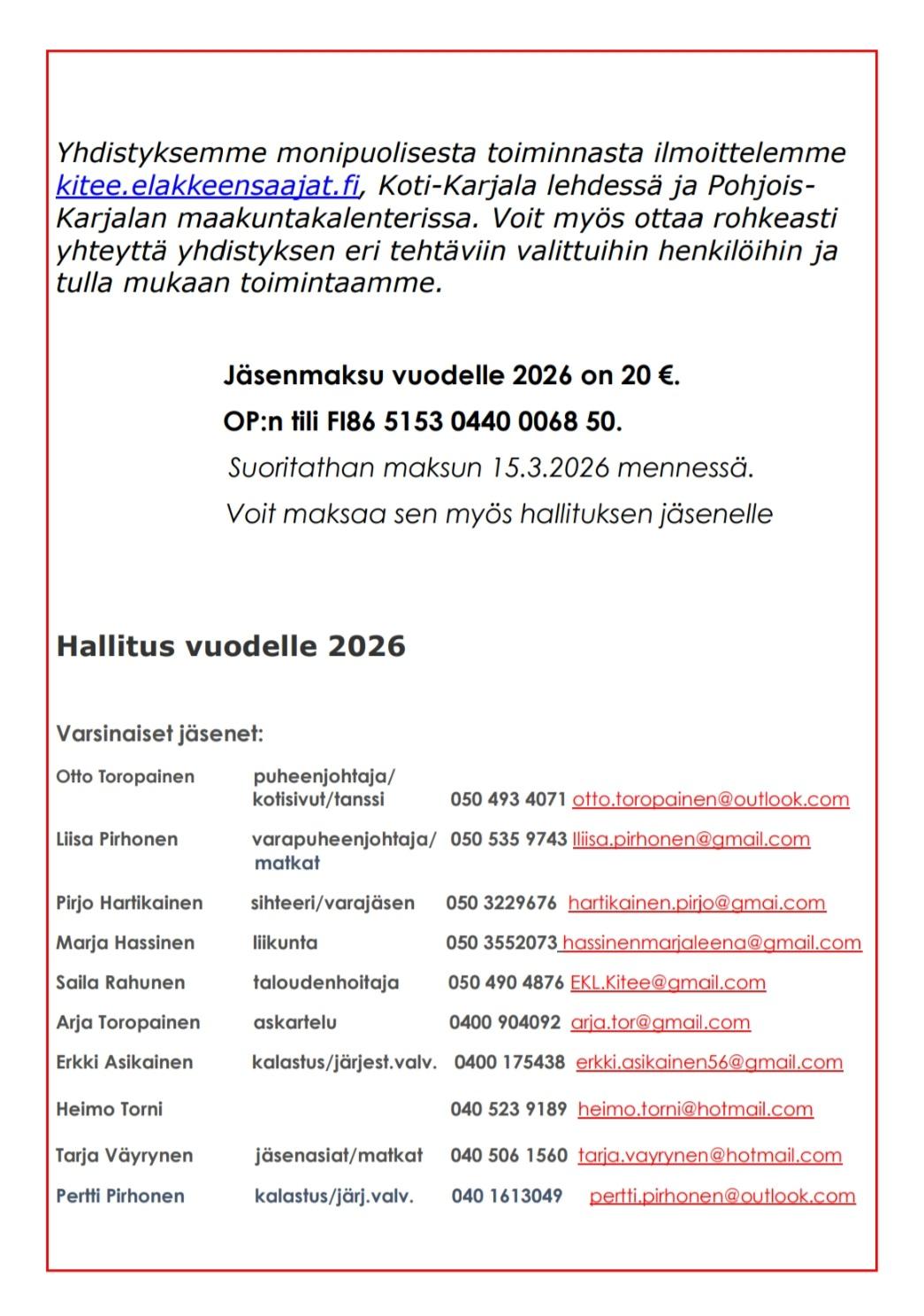 Jäsentiedote 2026